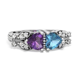 Genuine Amethyst With Genuine Amethyst And Genuine London Blue Topaz Ring