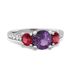 Genuine Amethyst With Genuine Fire Opal And Lab Created Sapphire Ring