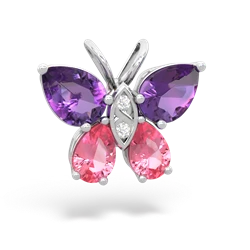 Genuine Amethyst With Lab Created Emerald And Genuine Tanzanite Necklace