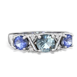 Genuine Aquamarine With Genuine Pink Tourmaline And Genuine Tanzanite Ring