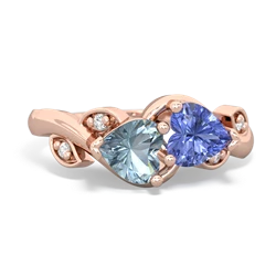 aquamarine-ruby double heart ring