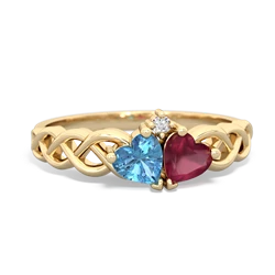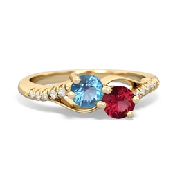 Blue Topaz Lab Pink Sapphire Jewelry in 14K Yellow Gold