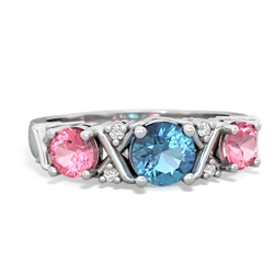 Genuine Swiss Blue Topaz With Genuine Amethyst And Genuine Pink Tourmaline Ring
