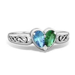 Blue Topaz Lab Ruby "Our Heart" Rings in 14K White Gold