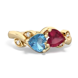 Blue Topaz Lab Ruby "Our Heart" Rings in 14K Yellow Gold