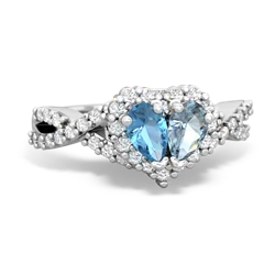 blue topaz-lab sapphire double heart ring