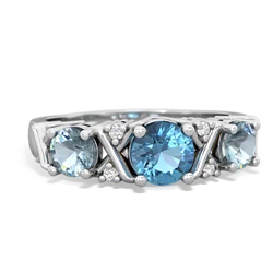 blue topaz-lab sapphire three stone pave ring