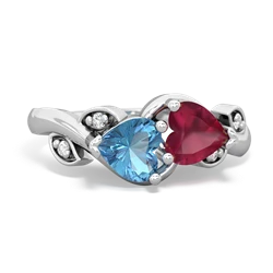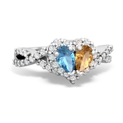 blue topaz-opal double heart ring