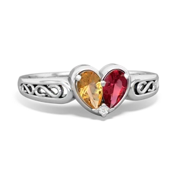 citrine-garnet double heart ring