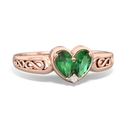 emerald-sapphire double heart ring