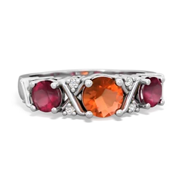 Genuine Fire Opal With Genuine Tanzanite And Lab Created Pink Sapphire Ring