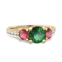 lab emerald-fire opal three stone pave ring lab emerald-fire opal three stone pave ring