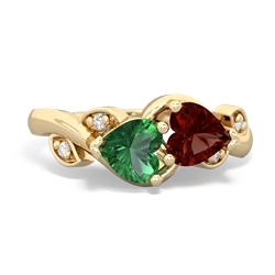 lab emerald-tourmaline double heart ring