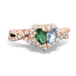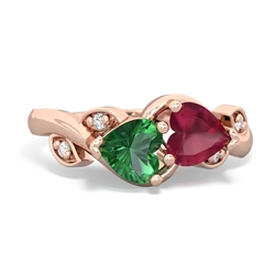 Lab Emerald Garnet "Our Heart" Rings in 14K Rose Gold