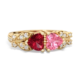 lab ruby double heart ring