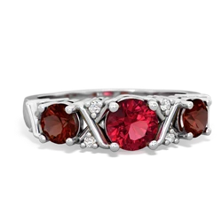 lab ruby-white topaz three stone ring