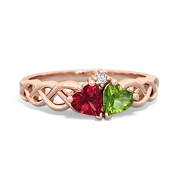 lab ruby-garnet double heart ring