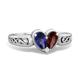 lab sapphire-sapphire double heart ring
