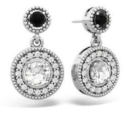 onyx-fire opal halo earrings