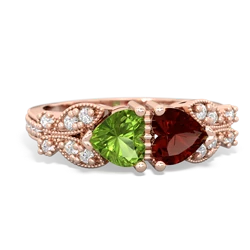 peridot-peridot double heart ring