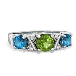 peridot-tanzanite three stone pave ring