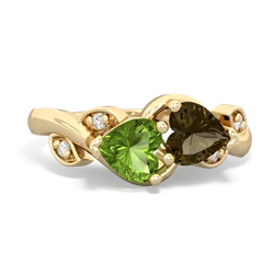peridot-ruby double heart ring