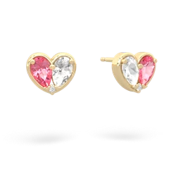 Lab Pink Sapphire Amethyst Lever Back Earrings in 14K Yellow Gold