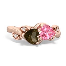 Smoky Quartz Lab Ruby Filigree Rings in 14K Gold