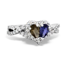 smoky quartz-sapphire double heart ring