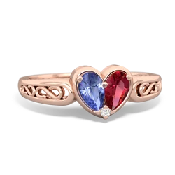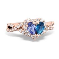 tanzanite-emerald double heart ring