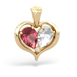 Pink Tourmaline Lab Emerald Antique Style Necklaces in 14K Gold
