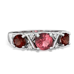 Genuine Pink Tourmaline With Genuine Sapphire And Genuine Black Onyx Ring