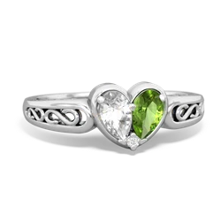 white topaz-ruby pave heart ring