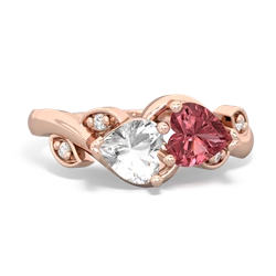 White Topaz Garnet Nature Inspired Rings in 14K Rose Gold
